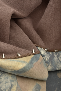 Crafted from vintage Wrangler jeans and vintage camo trousers, these pants fuse two classics with added metallic studs at the back. Durable, bold, and built to stand out.