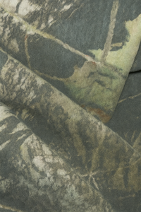 The upper half is vintage Wrangler trouser accented by the lower camouflaged half gathered at the hem.